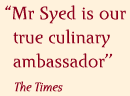 Shamim, the Executive Head Chef, upholds the dedication to fine Indian cuisine that is Syed’s legacy, not least with his passion for rare and unusual spices. Highly recommended is the Goan speciality Lamb Xacuti, or the fabulous Duck Tikka Ceylone.We also offer a unique opportunity to savour the Bangladeshi seafood delights of King Prawn Shorsher or Prawn Pumpkin.